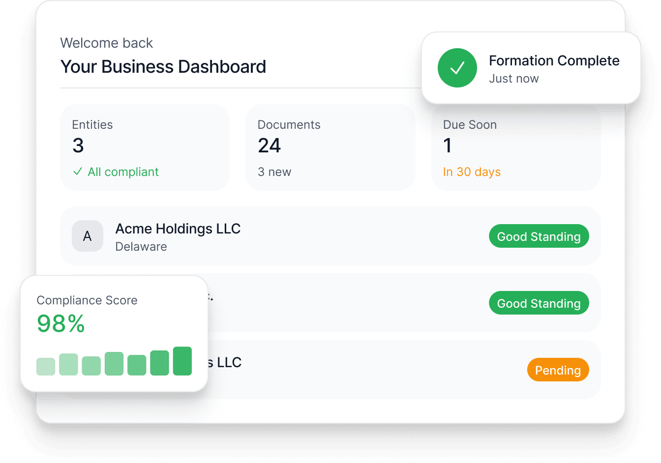Launch your business with a guided formation process built for simplicity.